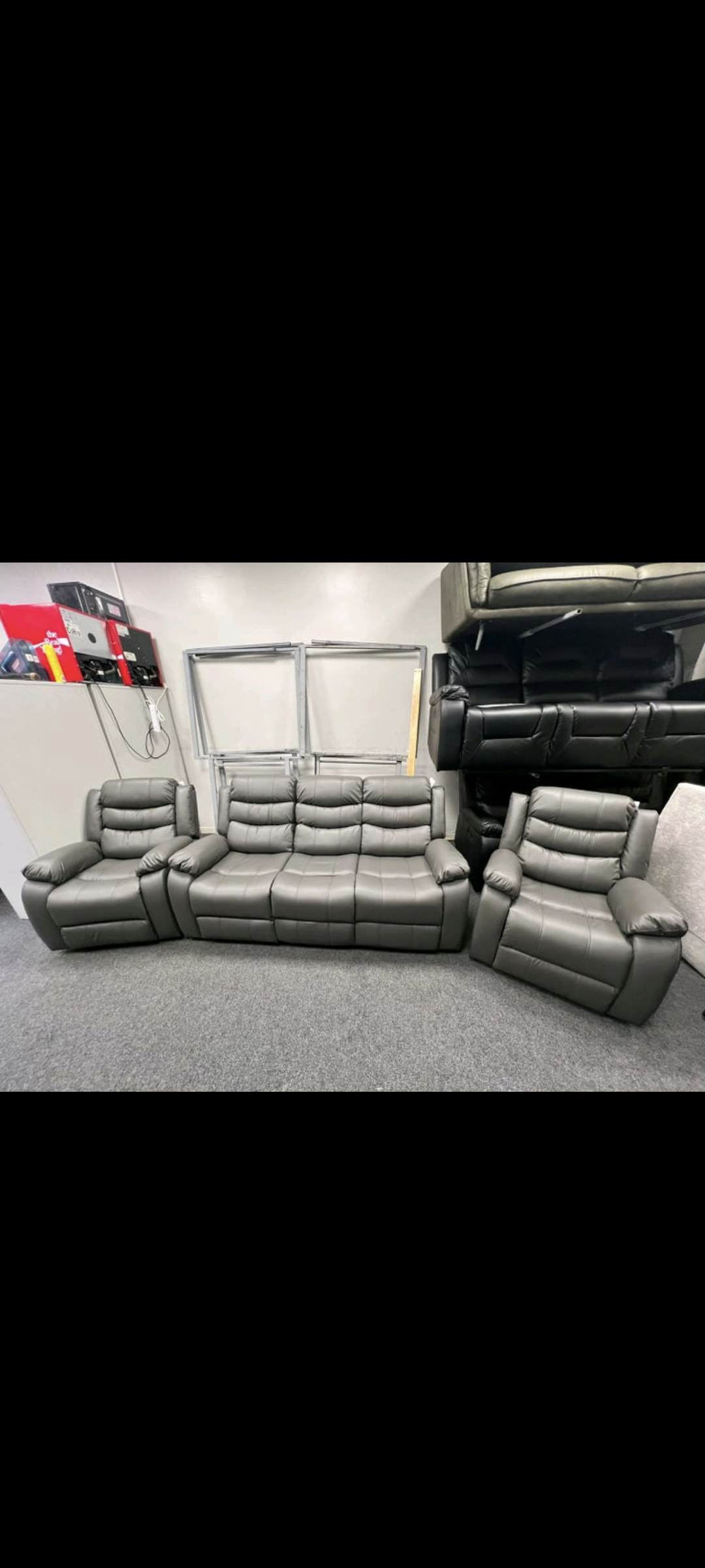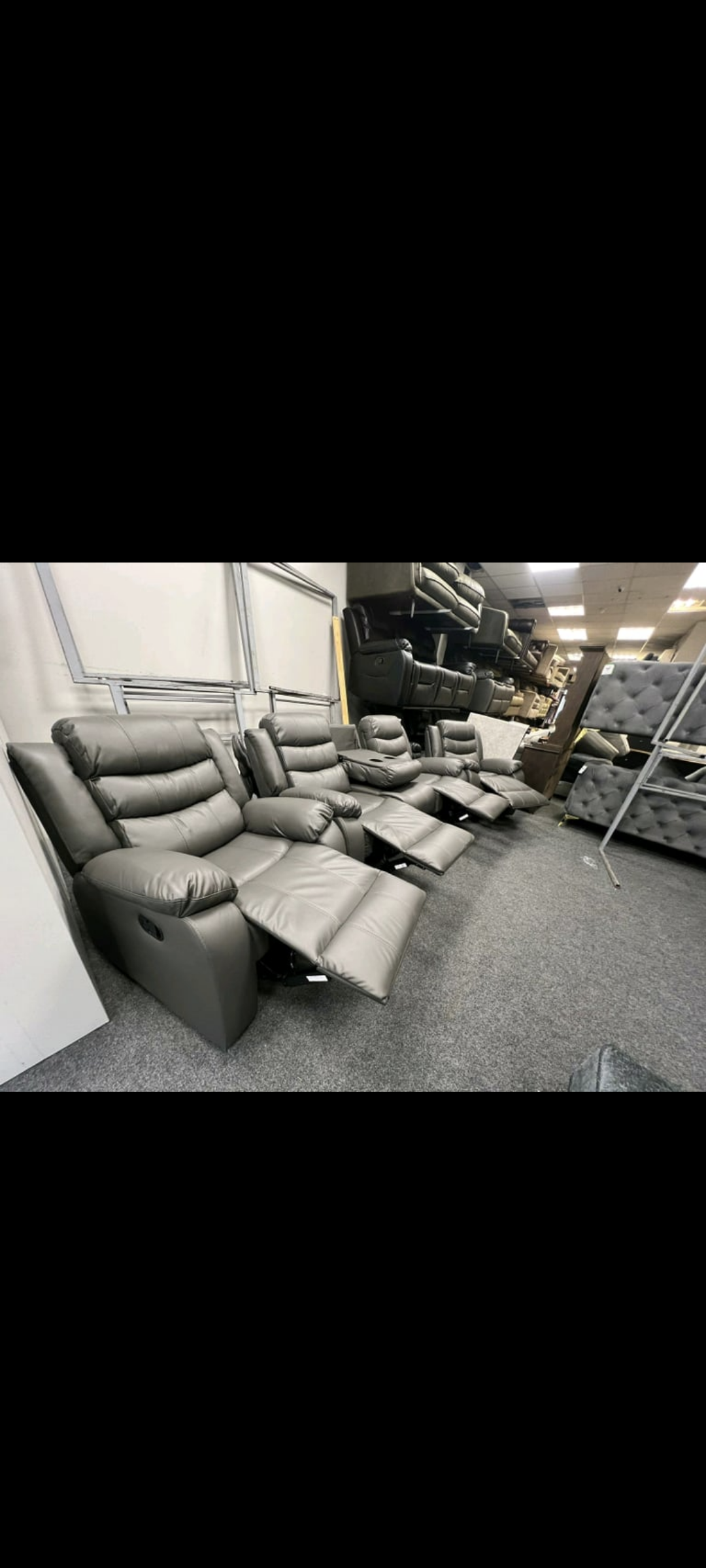 Expertly crafted with premium dark grey leather and cashmere, this bundle includes a 3 seater sofa and two 1 seater sofas. All seats are equipped with recliners for ultimate comfort. Upgrade your living space with luxurious materials and functionality.