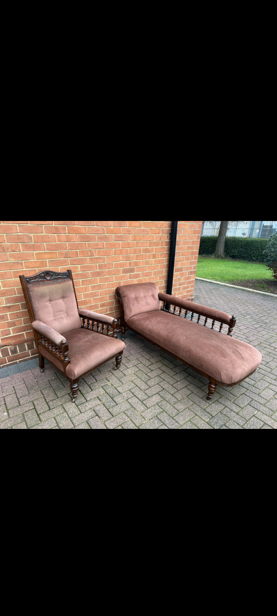 Antique Victorian Chair and Chaise Lounger