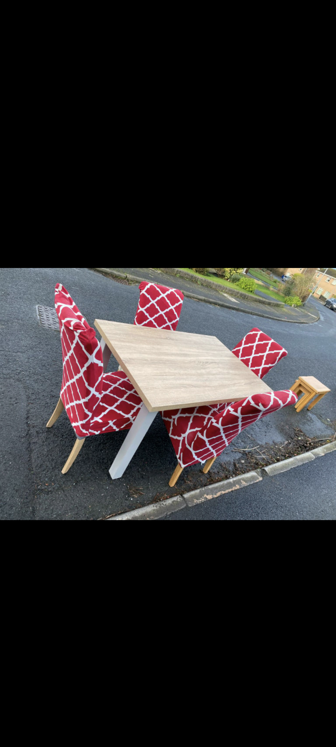 Introducing our expertly designed dining room table with colourful chairs. This set adds both style and functionality to your dining space. With durable construction and eye-catching hues, our table and chairs provide a dynamic and modern touch to any room.