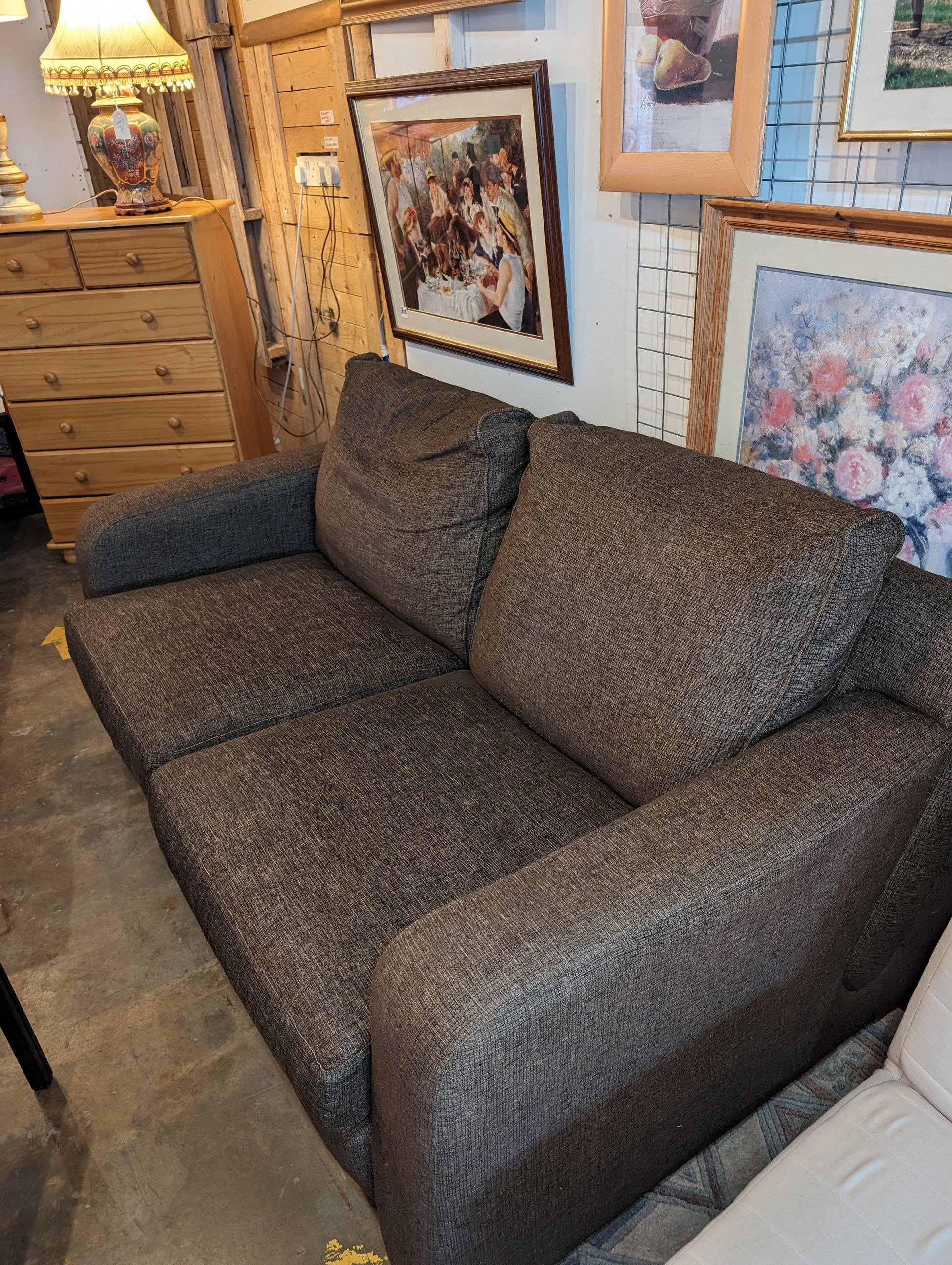 This Spacious 2 Seater Sofa is perfect for small living spaces. With its compact yet comfortable design, it can easily fit into any room. Made with high-quality materials, this sofa is in good condition and will provide a cozy seating experience for years to come.