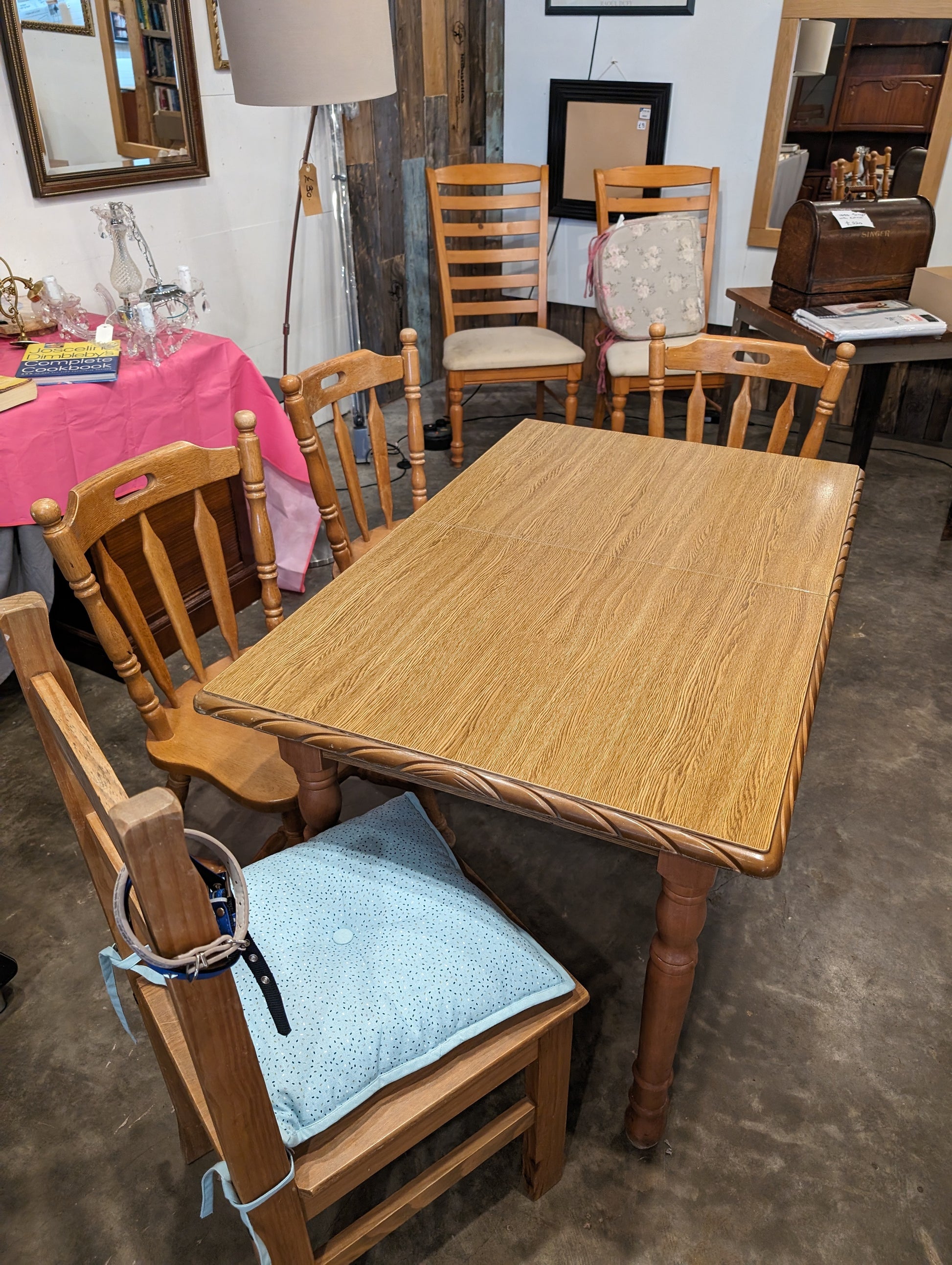 This set includes a sturdy wooden table and 4 chairs, providing a durable and functional dining space for your home. The natural material adds a touch of warmth and elegance to any room, while the set ensures comfort and convenience for family meals or hosting guests.